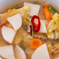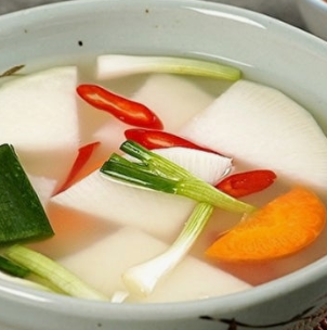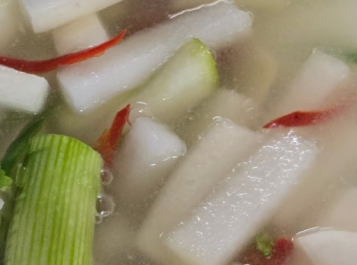 - 무가 국물 위로 뜨지 않게 눌러주기